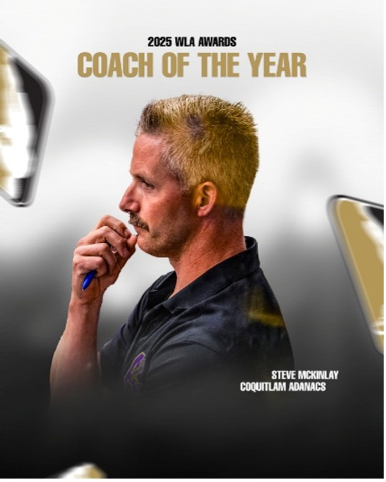 The WLA 2025 Coach of the Year is Steve McKinlay from the Coquitlam Adanacs. McKinlay won this award for the second consecutive year.